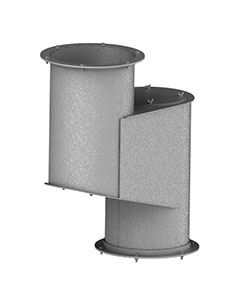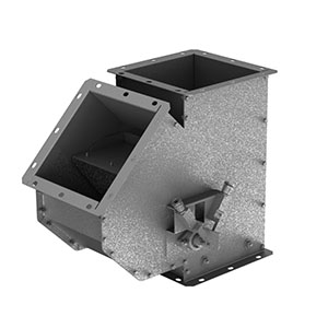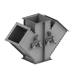 Виробляємо перекидні клапани різної конструкції. Клапани можуть бути: перекидні односторонні, перекидні двосторонні та тристоронні клапани, різного кута нахилу, круглого і квадратного перетину. Основні вузли перекидних клапанів: зварний корпус, який виготовляється з листової сталі, перекидна заслінка та привід. Конструкція має електропривод (черв'ячний мотор-редуктор). Також виробляємо три види гасників потоку зерна: вертикальний, регульований та з ексцентриком, для мінімізації пошкоджень продукту.