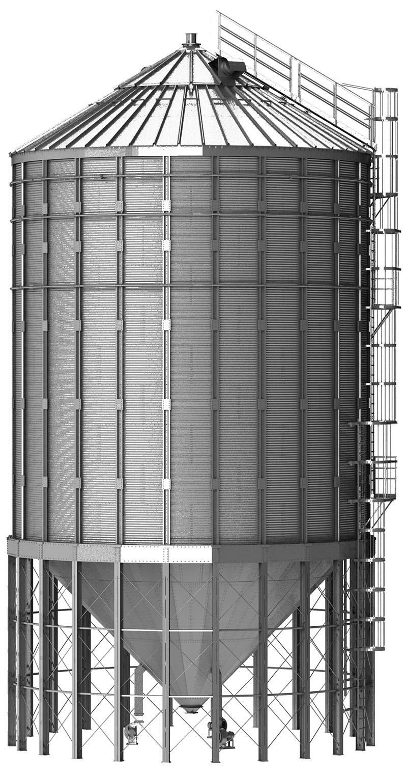 | Аеродно Обладнано необхідною кількістю аероканалів, що дозволяють рівномірно продувати продукт зберігання по всьому силосу. |