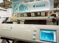 На выставочном стенде швейцарская компания «Бюлер» также представила образцы своей продукции. Большой интерес у посетителей вызвал оптический сортировщик SORTEX A. Эта машина, помимо сортировки продукции по цвету, убирает любые примеси, не совпадающие по структуре поверхности и по геометрии объекта. SORTEX A сортирует зерновые, масличные, бобовые, орехи и даже пластик — ПЭТ и резаные бутылки.